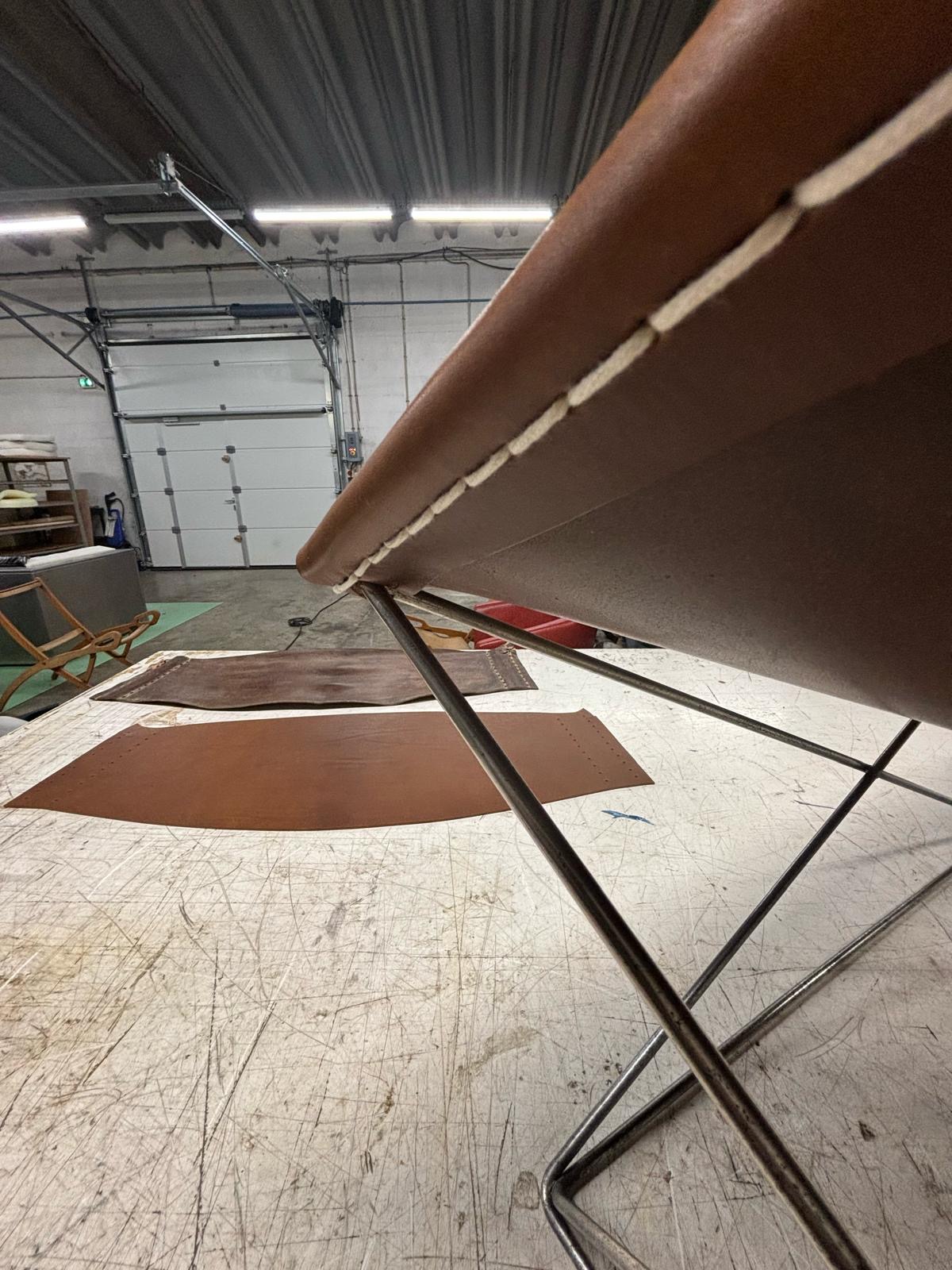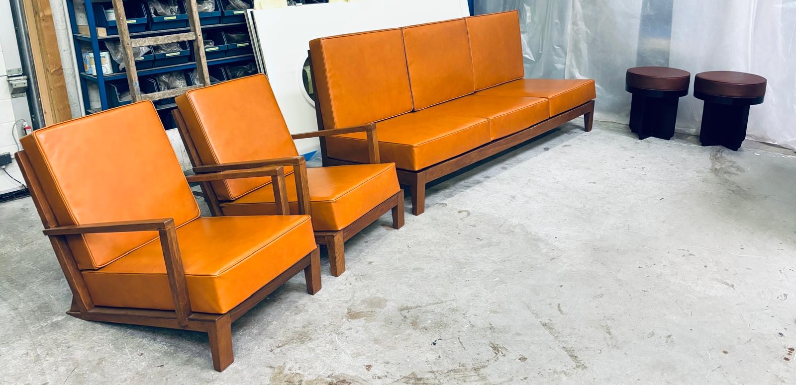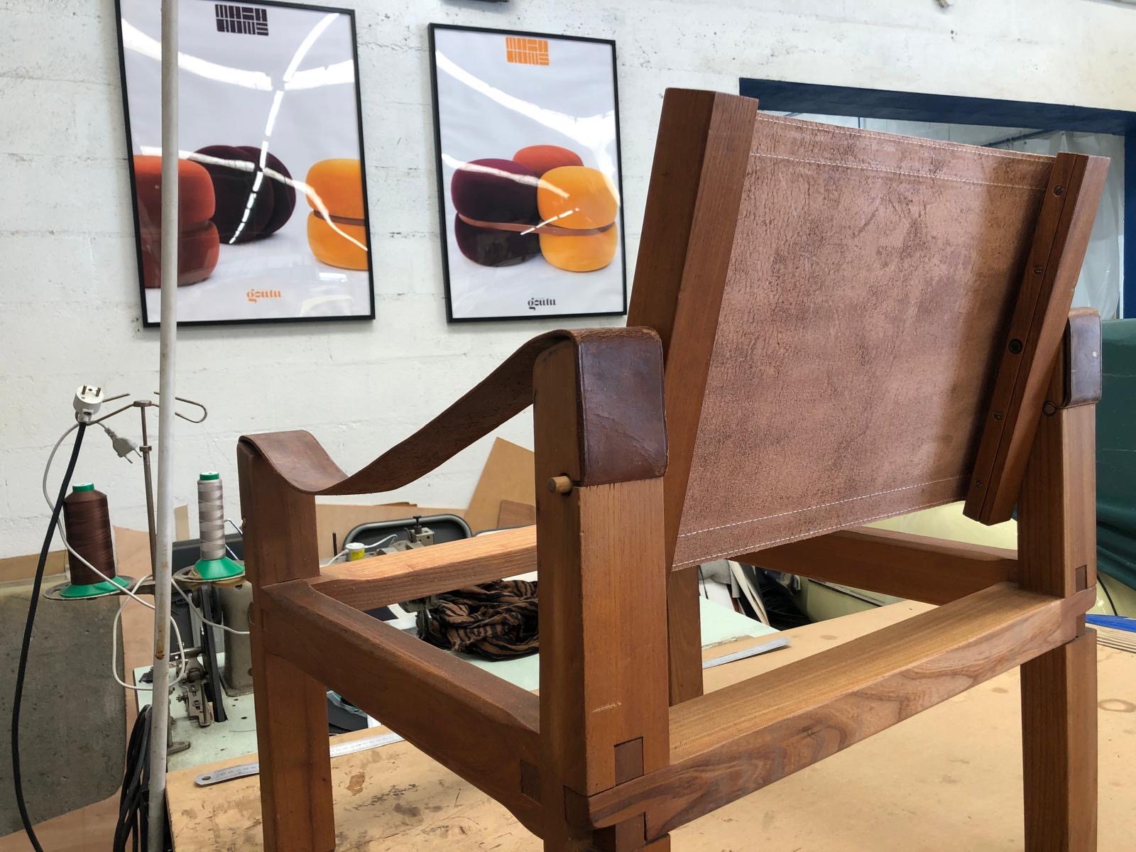 Notre savoir-faire et nos compétences dans la manipulation des matériaux souples, nous permettent de réaliser toute sorte de restauration de mobilier ancien. Comme ici, la remise à neuf de deux fauteuils en cuir.