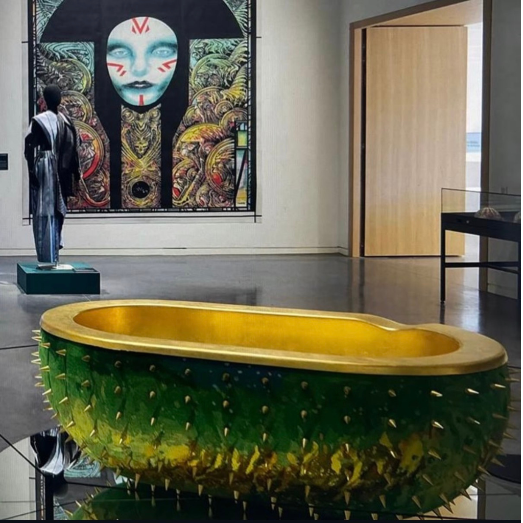 Le bain est une création de deux artistes plasticiens pour le musée d’Aubusson. Nous avons apporté notre savoir-faire dans l’assemblage de la tapisserie de cette pièce.